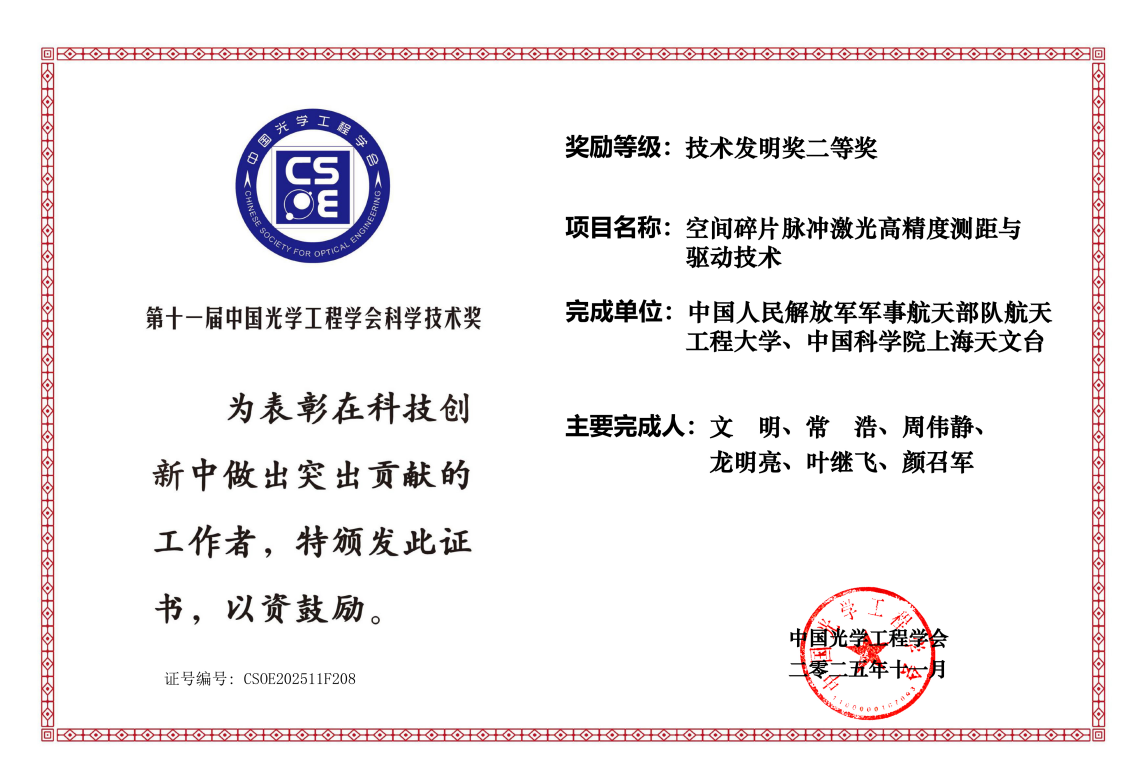 • 喜報:我臺獲第十一屆 “中國光學工程學會科學技術(shù)獎” 技術(shù)發(fā)明二等獎 2025-12-19